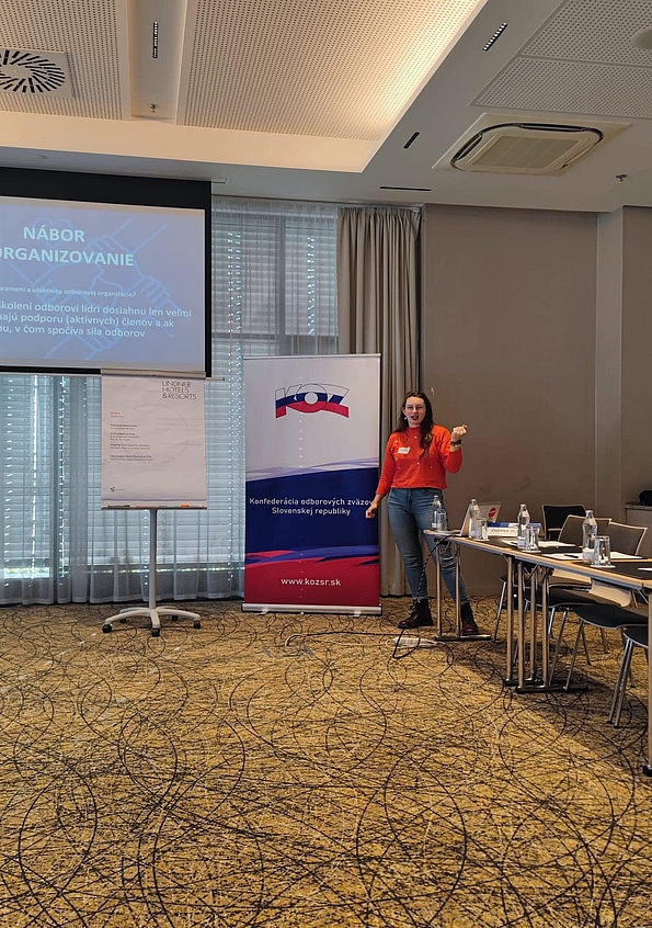 Die Ausbildung konzentrierte sich auf aktuelle Herausforderungen der Gewerkschaftsarbeit im 21. Jahrhundert. Zuzana Olšinová von ECHOZ leitete einen Workshop über effektive Methoden zur Mitgliederwerbung, während die Liga für Menschenrechte die Problematik der Arbeitsausbeutung von Ausländern und Möglichkeiten ihrer Unterstützung vorstellte. Es wurde darüber diskutiert, wie neue Arbeitsformen oft Arbeitnehmer:innen isolieren und warum gewerkschaftliche Solidarität in solchen Zeiten wichtiger ist als je zuvor – Gewerkschaften schaffen Raum für eine gemeinsame Stimme und gegenseitige Unterstützung.