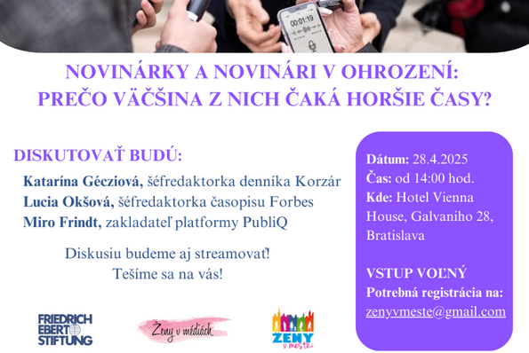OZ Ženy v médiách zorganizovalo v spolupráci s FES v apríli a máji dve diskusie venované aktuálnym témam žurnalistiky a postaveniu žien vo vedúcich pozíciách.